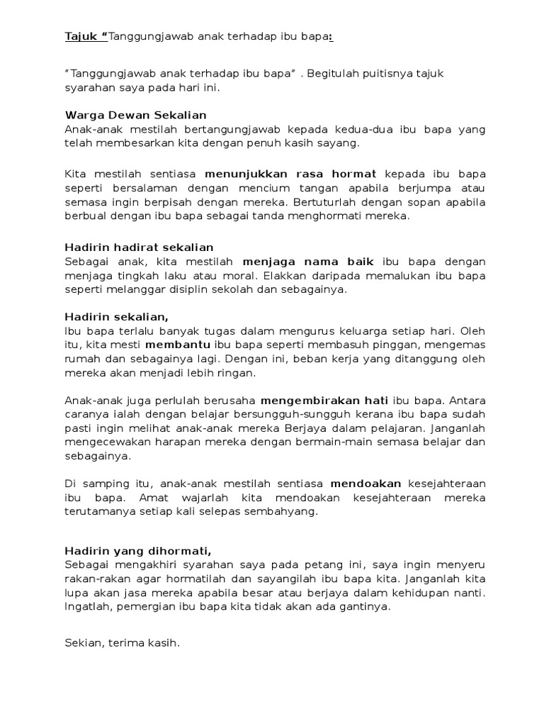 Tanggungjawab Sebagai Seorang Anak Terhadap Ibu Bapa Pdf