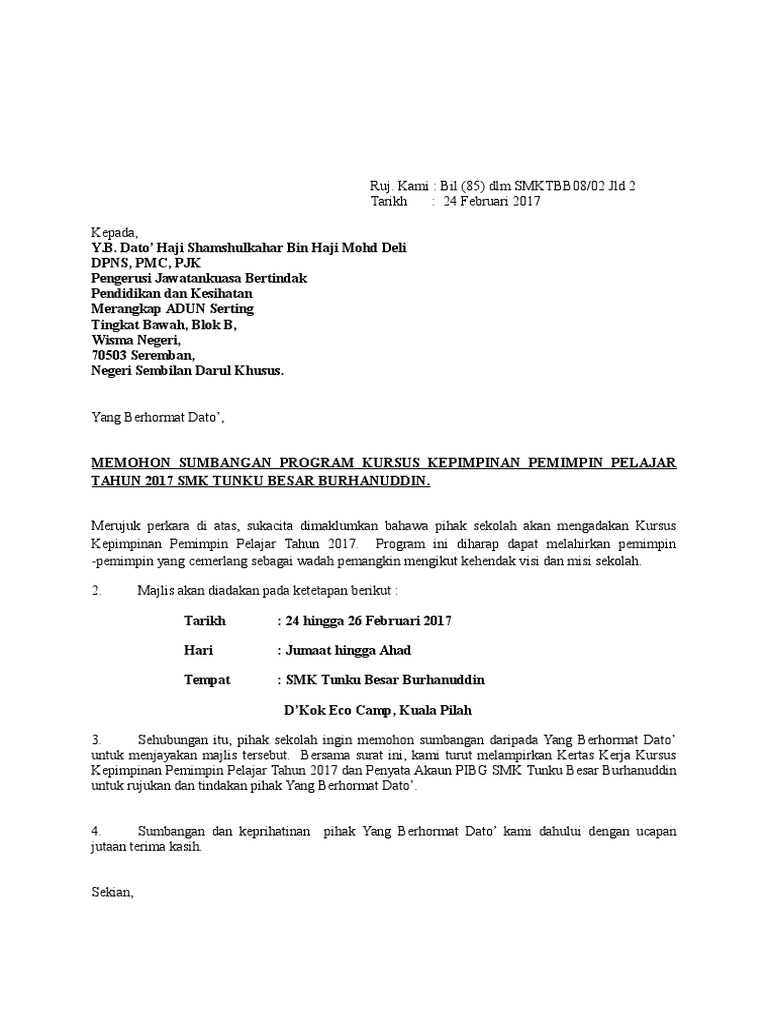 Surat Mohon Sumbangan Yb Shamshulkahar Pdf